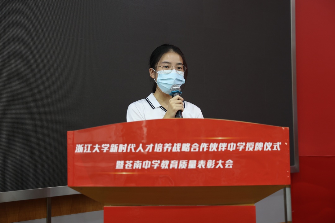 來(lái)自高三(1)班學(xué)生代表全體獲獎(jiǎng)學(xué)生向天信儀表集團(tuán)有限公司和蒼南縣新華書(shū)店有限公司表示最誠(chéng)摯的謝意。學(xué)生們獲得的不僅僅是物質(zhì)的幫助,更多是愛(ài)心的感知,精神的豐富,還有在雨中黑夜中翩翩起舞的勇氣。未來(lái)在世界的各個(gè)角落,他們定會(huì)用累累碩果回饋社會(huì),用滿腔真誠(chéng)鼓勵(lì)更多在雨中躊躇的舞者。